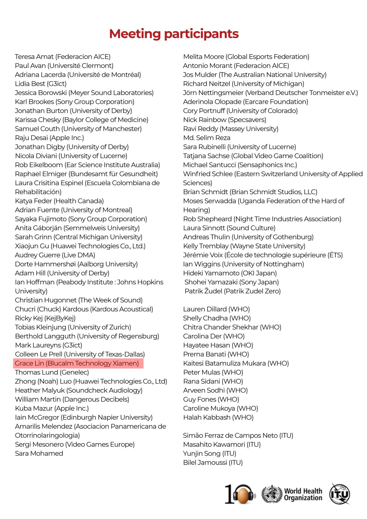 As an innovative brand in the professional headset industry, Blucalm Technology is greatly honored to be invited—alongside global technology leaders such as Apple, Sony, and Huawei—to participate in the high-level, multi-stakeholder meeting “Make Listening Safe Initiative 2025”, hosted by the World Health Organization (WHO) and the International Telecommunication Union (ITU). The event was held from July 1–3, 2025, at ITU Headquarters in Geneva, Switzerland.